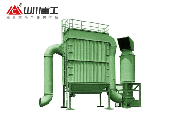 除塵器主要由上箱體、中箱體、灰斗、進風均流管、支架濾袋及噴吹裝置、卸灰裝置等組成。含塵氣體從除塵器的進風均流管進入各分室灰斗,并在灰斗導(dǎo)流裝置的導(dǎo)流下,大顆粒的粉塵被分離,直接落入灰斗,而較細粉塵均勻地進入中部箱體而吸附在濾袋的外表面上,干凈氣體透過濾袋進入上箱體,并經(jīng)各離線閥和排風管排入大氣。隨著過濾工況的進行,濾袋上的粉塵越積越多,當設(shè)備阻力達到限定的阻力值(一般設(shè)定為1500Pa )時,由清灰控制裝置按差壓設(shè)定值或清灰時間設(shè)定值自動關(guān)閉一室離線閥后,按設(shè)定程序打開電控脈沖閥,進行停風噴吹,利用壓縮空氣瞬間噴吹使濾袋內(nèi)壓力聚增,將濾袋上的粉塵進行抖落(即使粘細粉塵亦能較徹底地清灰)至灰斗中,由排灰機構(gòu)排出。